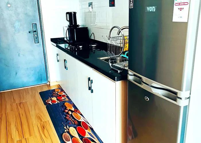 Crowne Airport Studios-Jkia erbjuder rum med utsikt över poolen. Ett badkar, en separat toalett och en dusch tillsammans med mikrovågsugn, vattenkokare och kylskåp finns i rummen.